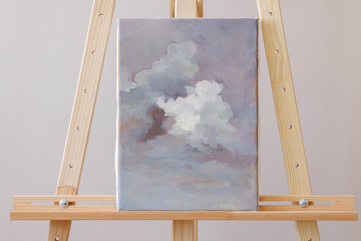 Светлина, въздух и безвремие – тази картина улавя краткия миг, в който небето се превръща в живо платно. Меката, пастелна палитра и плавните преходи между тоновете носят усещане за лекота и съзерцание.