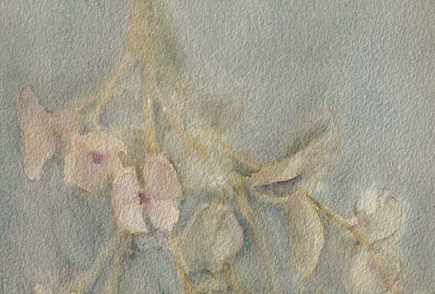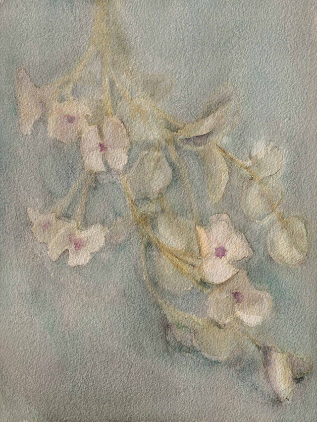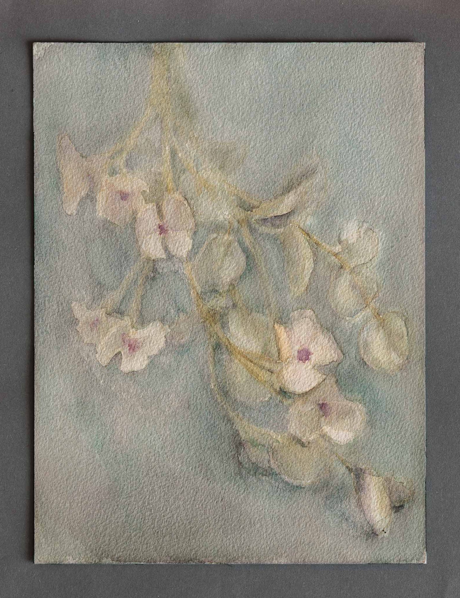 Нежна цветна композиция, изпълнена с тишина и въздух. Полупрозрачните тонове и меките линии създават усещане за крехка красота и спокойствие.