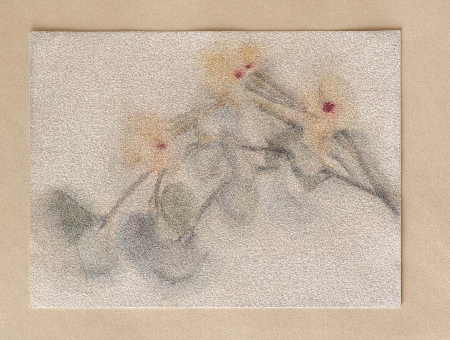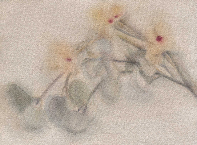 Ефирни цветя, уловени в меко, почти шепнещо присъствие. Тишина и лекота върху хартия.