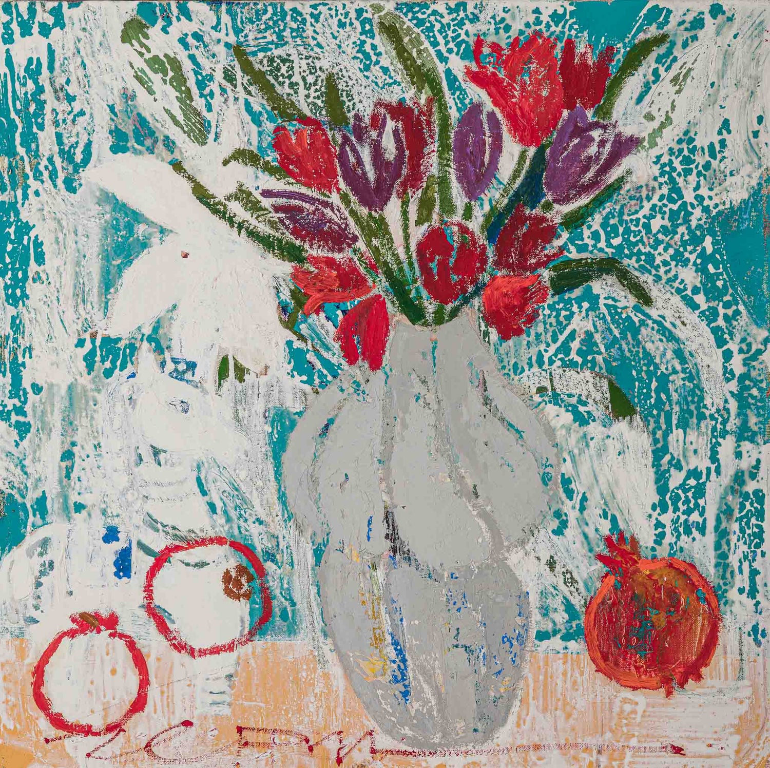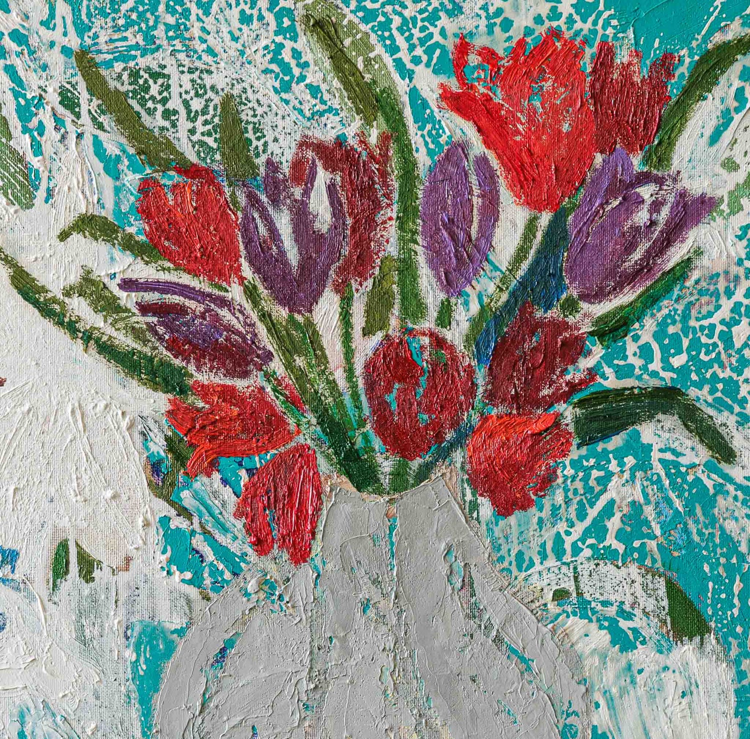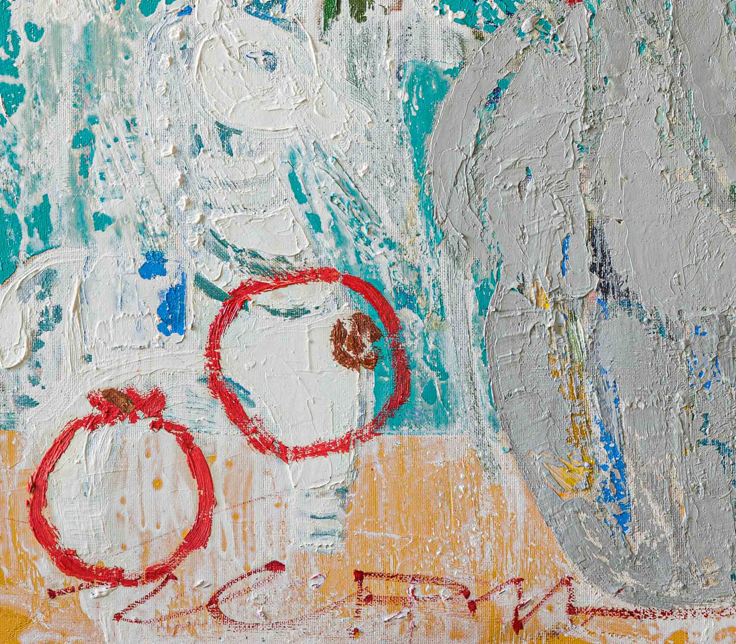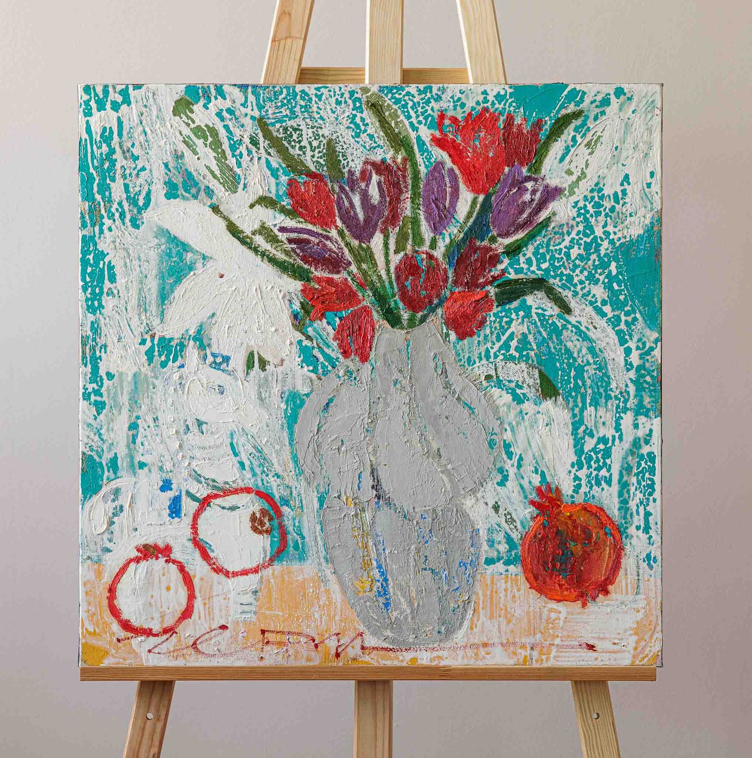 Тук Гергана Лалова изгражда натюрморт, в който цветът се превръща в основен носител на емоция.