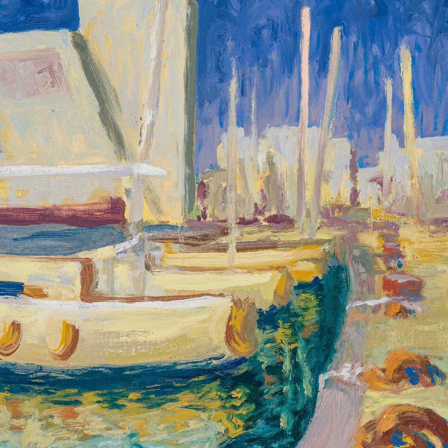 Топлата светлина обгръща пристанището, където тишината и движението се сливат в хармония.