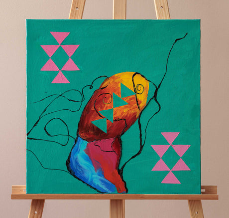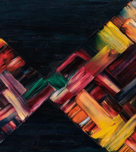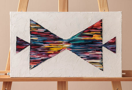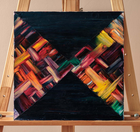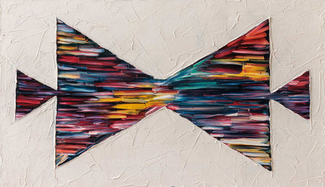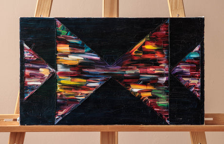 В платната си изгражда многослойни композиции с наситена палитра и характерни, често повтарящи се геометрични форми. Обича процеса на наслагване и разкриване на боите – визуален ритъм, който оставя следи от движение, енергия и вътрешни преживявания. В творчеството си често вплита древни български символи и сакрални знаци, носещи послания за мъдрост и историческа памет. Един от емблематичните му цикли – „Канатица“ – представя съвременен прочит на традиционната българска шевица, преведена през модерната абстрактна форма.