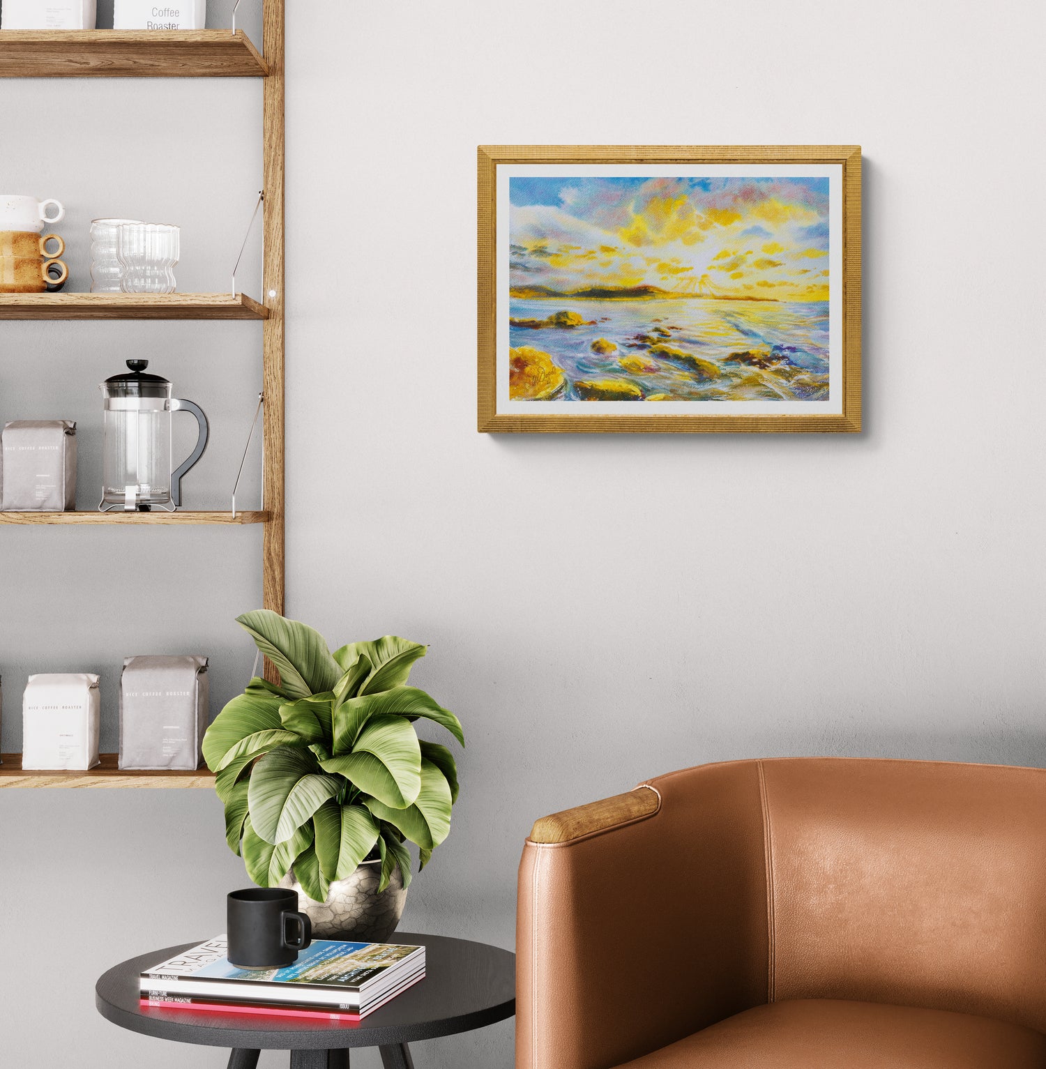 Картината носи усещане за спокойствие и ново начало – като глътка чист въздух в ранна утрин. Тя е прекрасно допълнение за всеки дом, в който търсим светлина, хармония и връзка с природата.