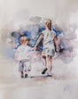 Две детски фигури, вплетени в движение и доверие, се отдалечават в безвремието на играта. Лекотата на акварела и отвореното пространство подчертават невинността, връзката и свободата на детството – свят, в който най-важната посока е заедно.